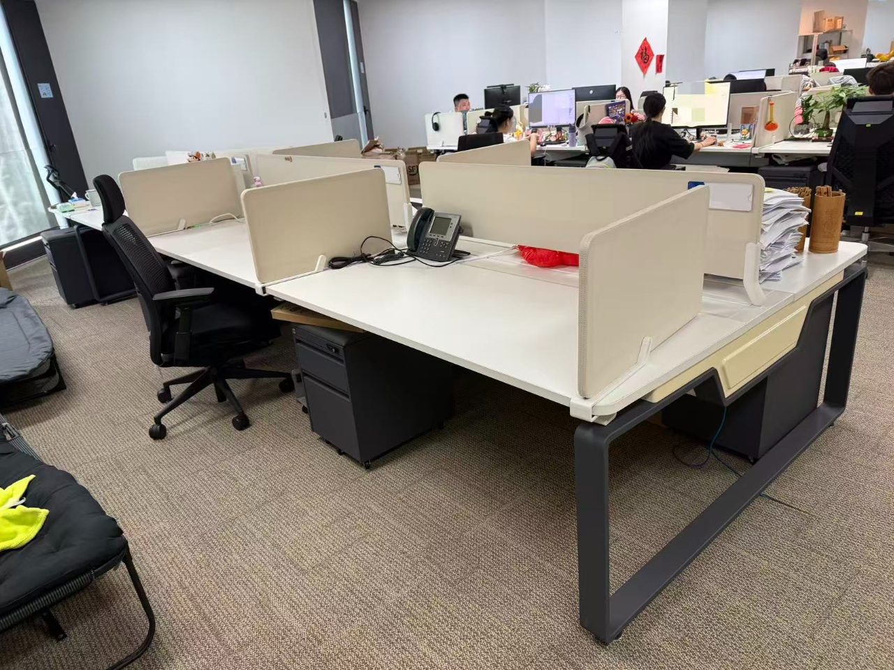 国产品牌二手直板屏风工位员工办公桌白色系