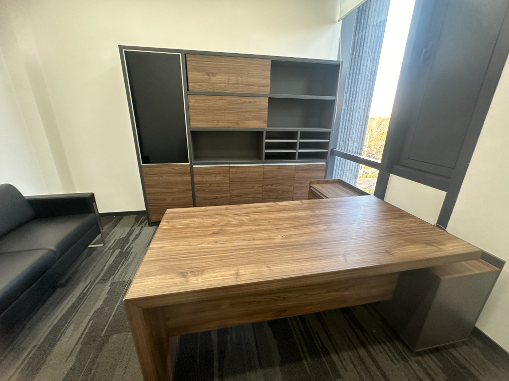 国产品牌全新板式班台老板桌灰色系